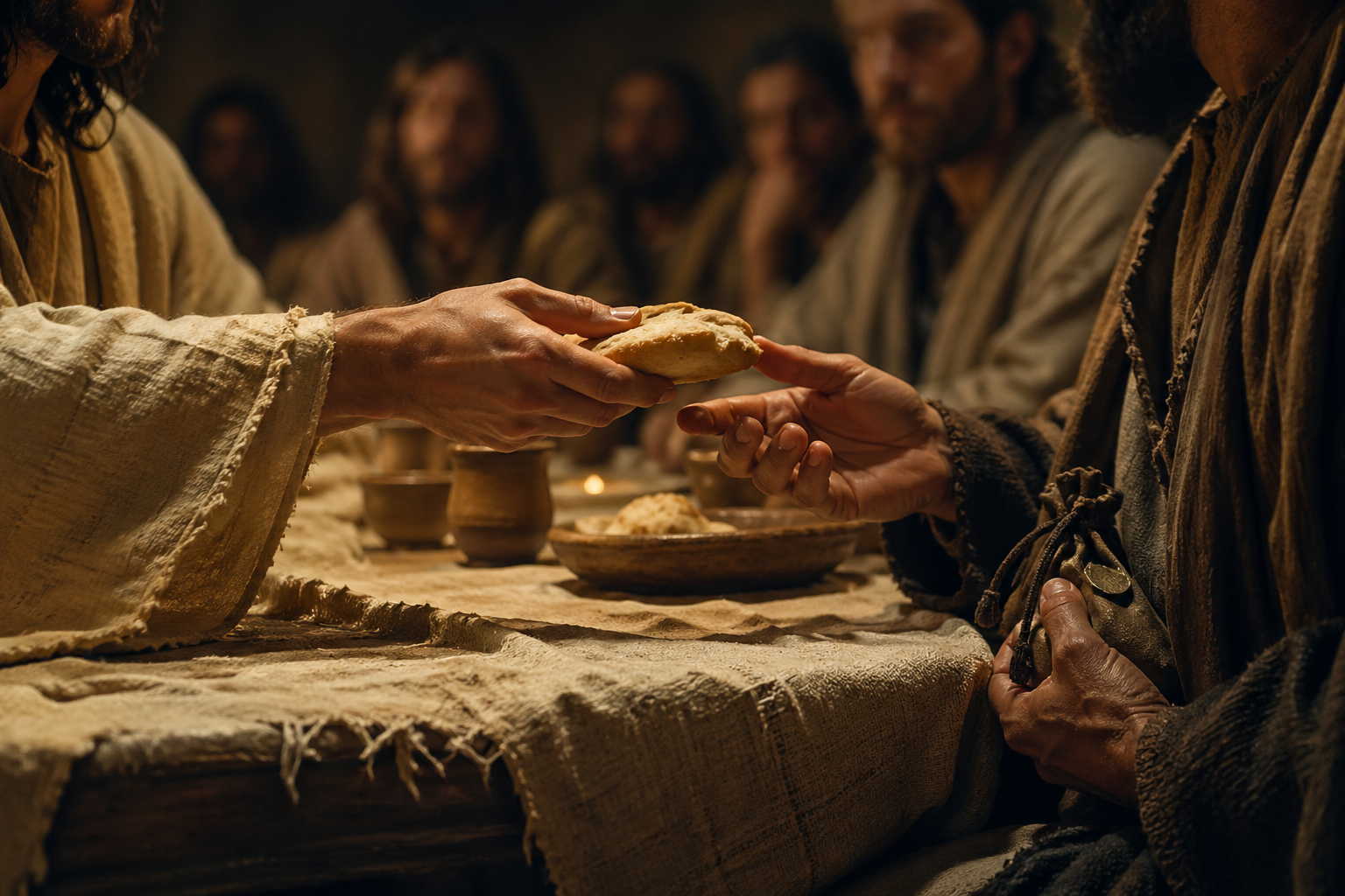 Tijdens de maaltijd reikt Jezus een stuk brood aan Judas. Dat lijkt een klein detail, het zegt iets wezenlijks over zijn plaats binnen het geheel. Om iets aangereikt te krijgen, moet iemand dichtbij zijn. Niet op afstand, niet buiten de kring, maar binnen de directe nabijheid.