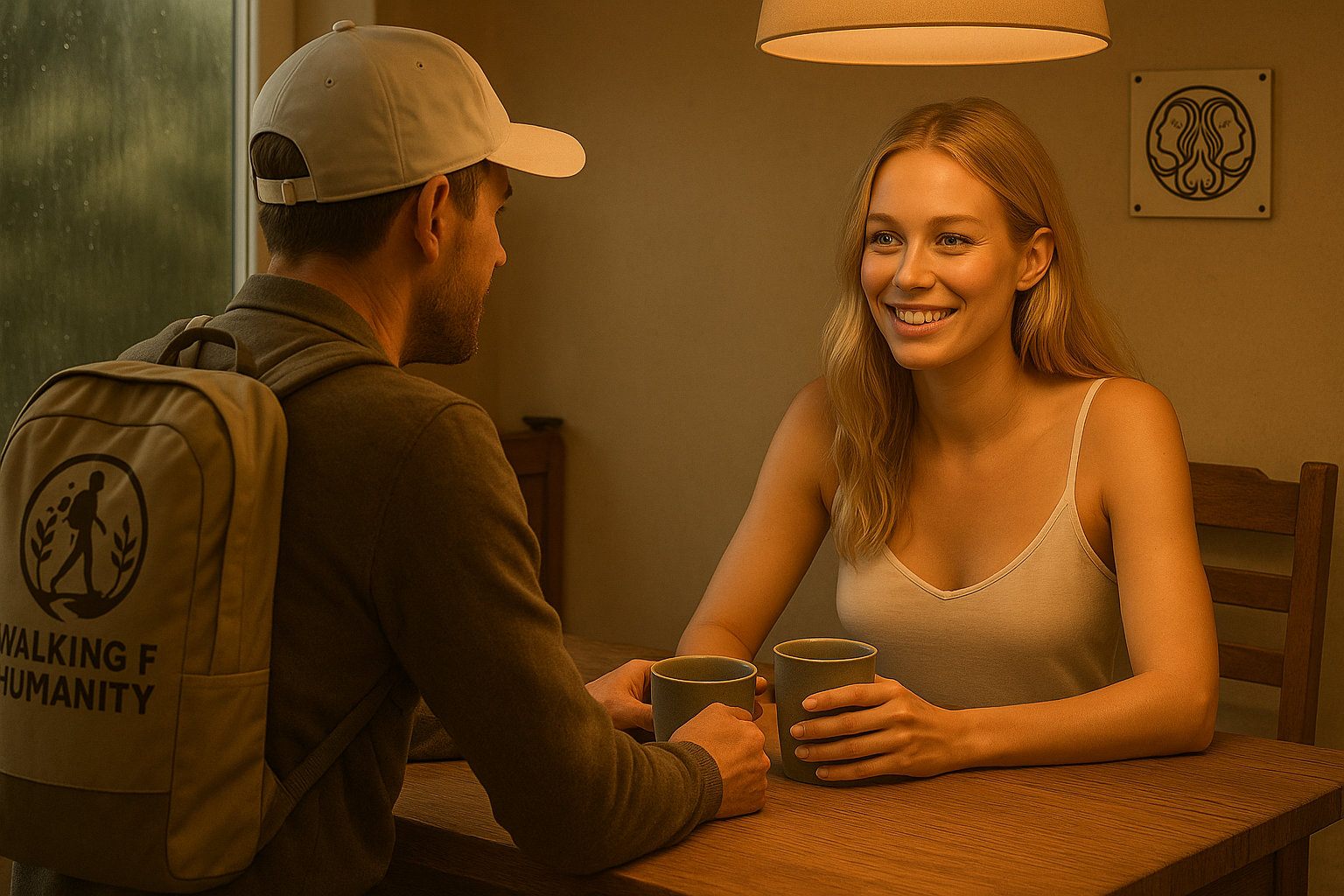 Ik logeerde bij een vrouw met een voorkeur voor een partij waar ik me fel tegen afzet. Toch spraken we elkaar en al snel was er een brug. We praatten over het Pieterpad, muziek en hoe de lucht rook na de regen. Daarna over het Pieterpad en mijn Walking for Humanity. Dat als vanzelf over ging in politiek. En toen hoorde ik haar verhaal – haar zorgen, haar teleurstelling, haar behoefte aan erkenning en gevoel van onveiligheid en angst. Niet uit boosheid, maar pijn omdat de politiek daar geen gehoor aan geeft, behalve ‘haar’ partij. Dat gesprek veranderde iets in mij. Niet omdat ik het met haar eens werd, maar omdat ik haar zag. Achter haar mening zat een mens. Haar angsten waren echt, hoe onecht de redenen daar weer achter waren. En daar, precies dat, was de kracht van onze verbinding.