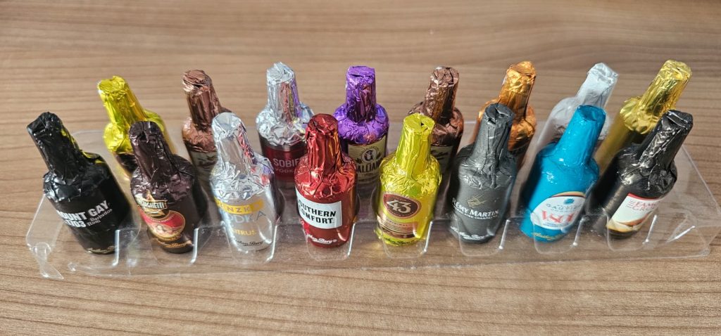 Een doosje chocolade-likeurtjes stond al een paar dagen op tafel. Zo’n verzameling mini-flesjes in glimmende folie, alsof ze rechtstreeks uit een feestelijke etalage zijn gestapt. Verschillende kleuren, verschillende drankjes, netjes naast elkaar in een doorzichtig plastic houdertje.